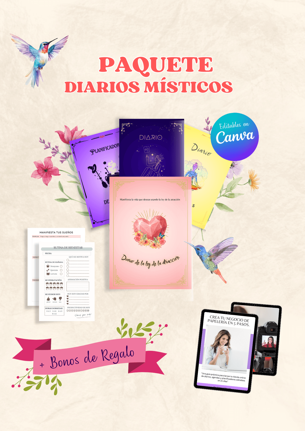 Si te gusta la papelería y quieres lanzar tu primera línea de diarios de bienestar y crecimiento personal, listos para personalizar en Canva y vender todo el año y generar ingresos desde casa.