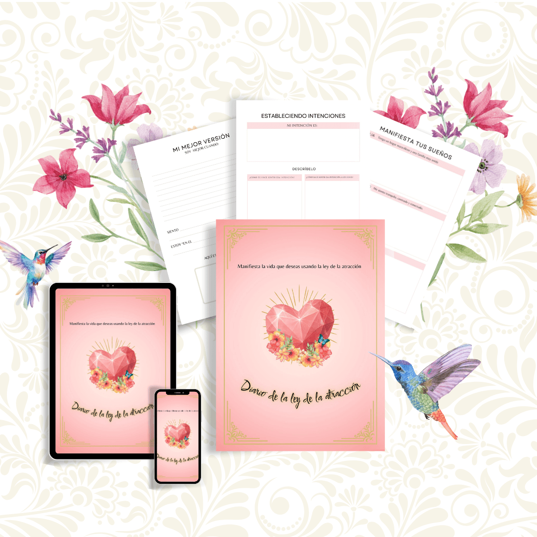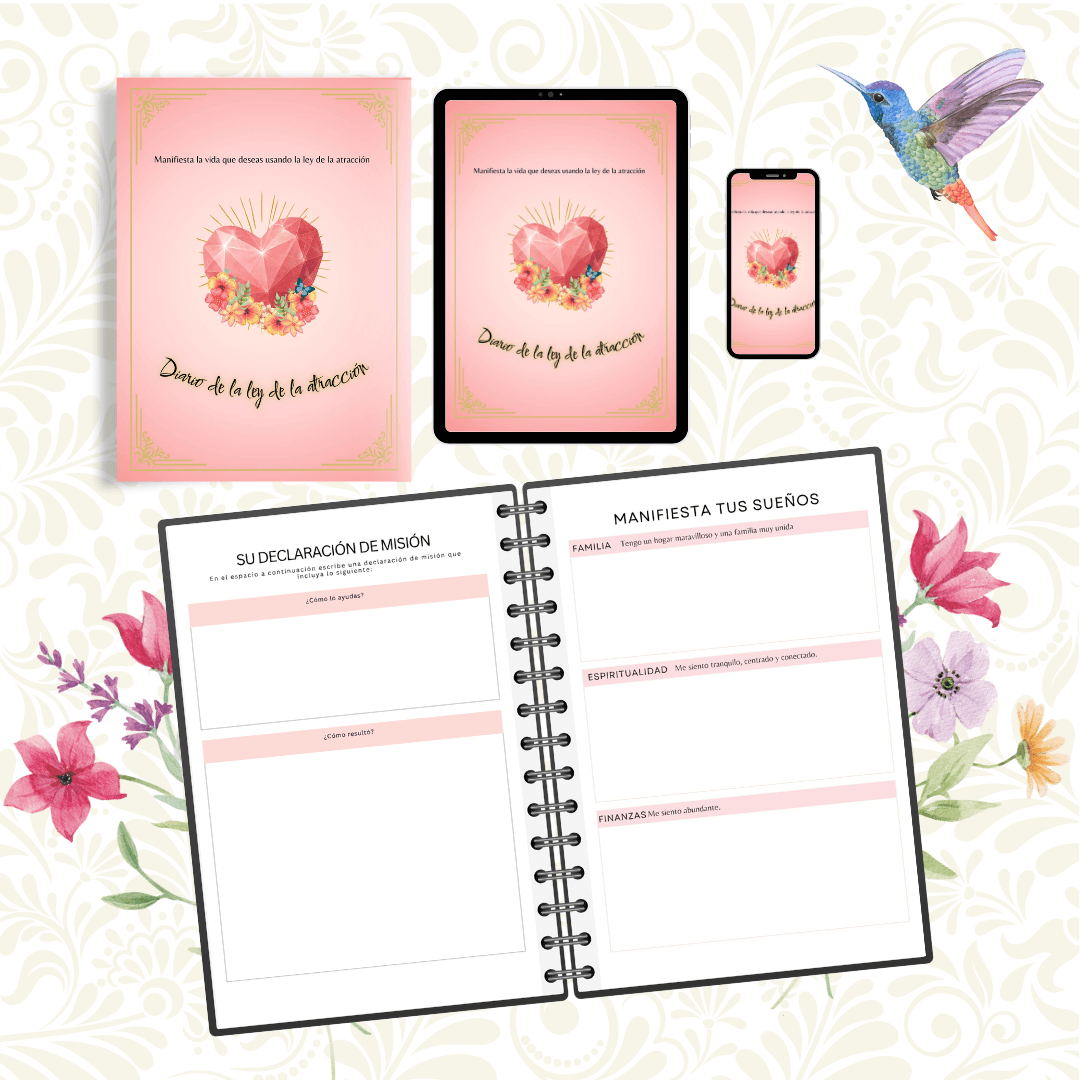 Este diario es ideal si quieres practicar la ley de la atracción para manifestar la vida que deseas. Trae páginas para anotar y trabajar tus deseos, practicar la ley de atracción por 7 días, y una sección de 21 días del método 3-6-9.