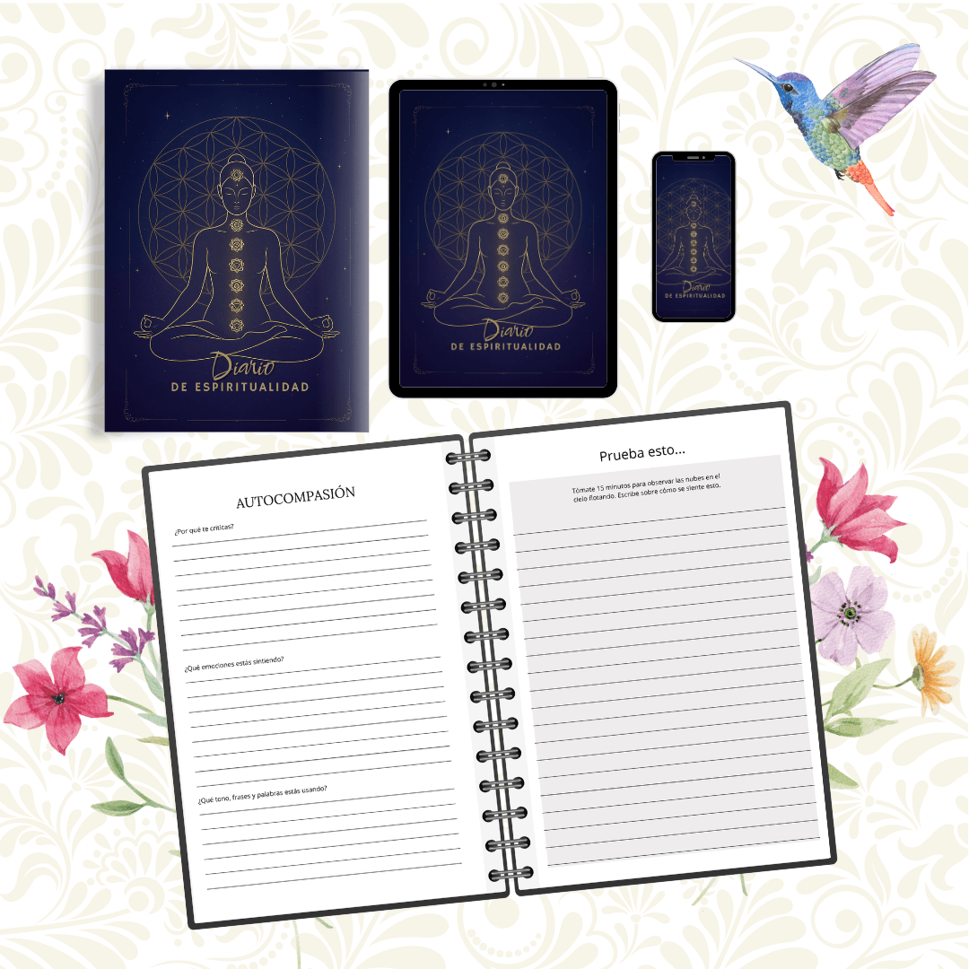 Este diario te ayuda a trabajar varios aspectos de la espiritualidad reforzando tu autoconocimiento para hacer cambios significativos en tu vida. Es ideal para quienes quieren trabajar varios temas en un solo lugar. Además, cuenta con herramientas para tus prácticas de yoga, alineación de chakras y tarot.