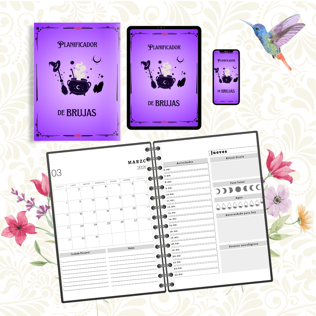 Con este planificador podrás anotar tus rituales y hechizos mágicos, tus hierbas medicinales y tus recetas. Lleva organizado tu día a día en un solo lugar, siguiendo el ritmo de la luna.
